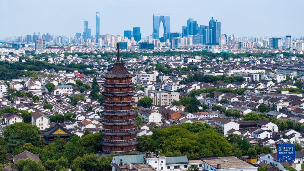 从苏州古城最高点北寺塔环视,河街相邻、小桥流水。从春秋时期伍子胥建阖闾大城至今,历经千年,这座城仍然保持“水陆并行、河街相邻”的双棋盘格局和“小桥流水、古迹名园”的独特风貌。