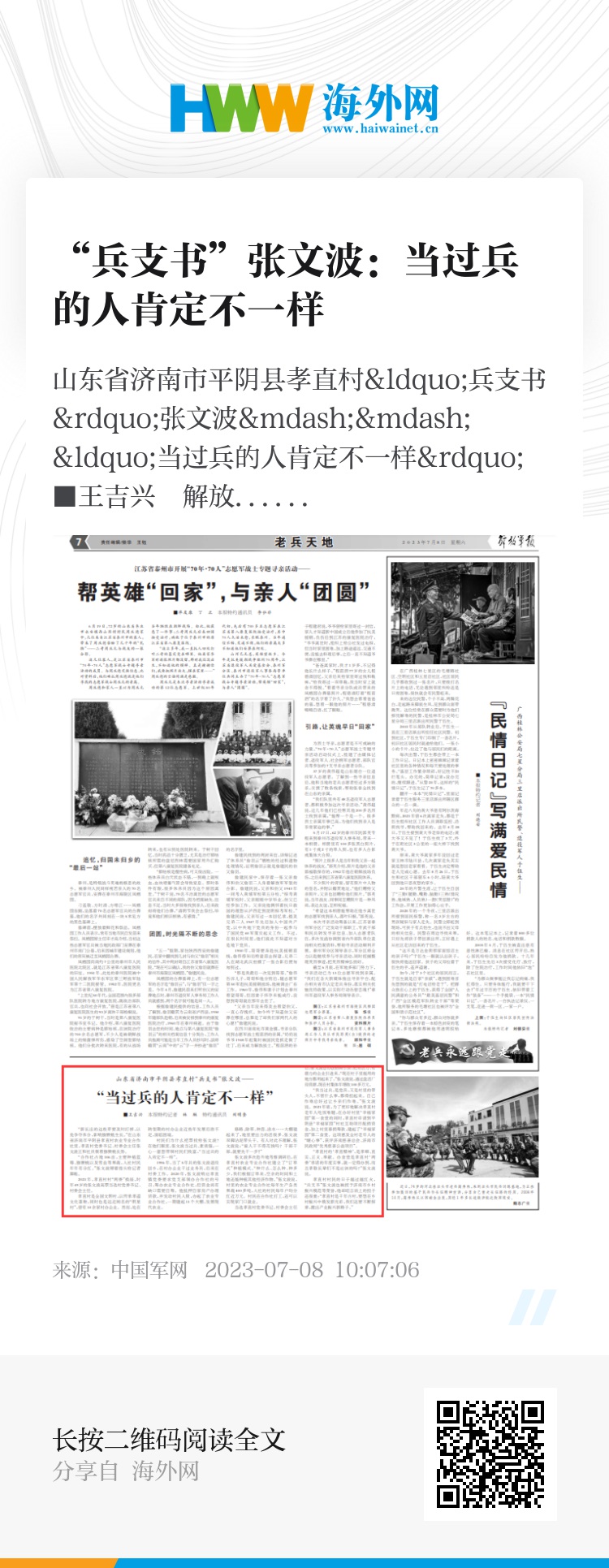 山东省济南市平阴县孝直村“兵支书”张文波——