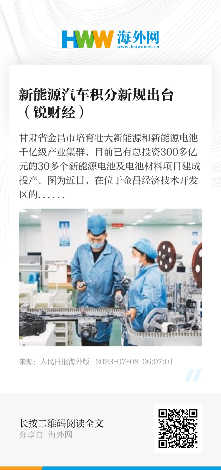 近日,工业和信息化部等五部门发布《关于修改〈乘用车企业平均燃料消耗量与新能源汽车积分并行管理办法〉的决定》,调整新能源车型积分计算方法,自今年8月1日起施行。工信部有关负责人表示,此次修改对积分市场供需、积分价格的调节作用会显著增强,将促进节能与新能源汽车产业高质量发展。