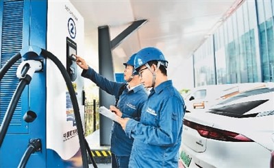 今年以来,南方电网广东电网公司提前布局县道、乡道沿线充换电基础设施建设,计划在年内继续新增3400台公共充电桩,重点完善充电服务网络,服务新能源汽车下乡“最后一公里”。图为南方电网广东惠州惠城供电局运维人员在望江综合能源充电站检查充电桩联网状态。沈甸摄(人民视觉)