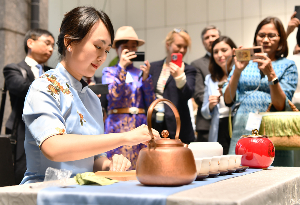 在意大利罗马的联合国粮农组织总部,福建安溪铁观音茶文化系统的代表表演茶艺。