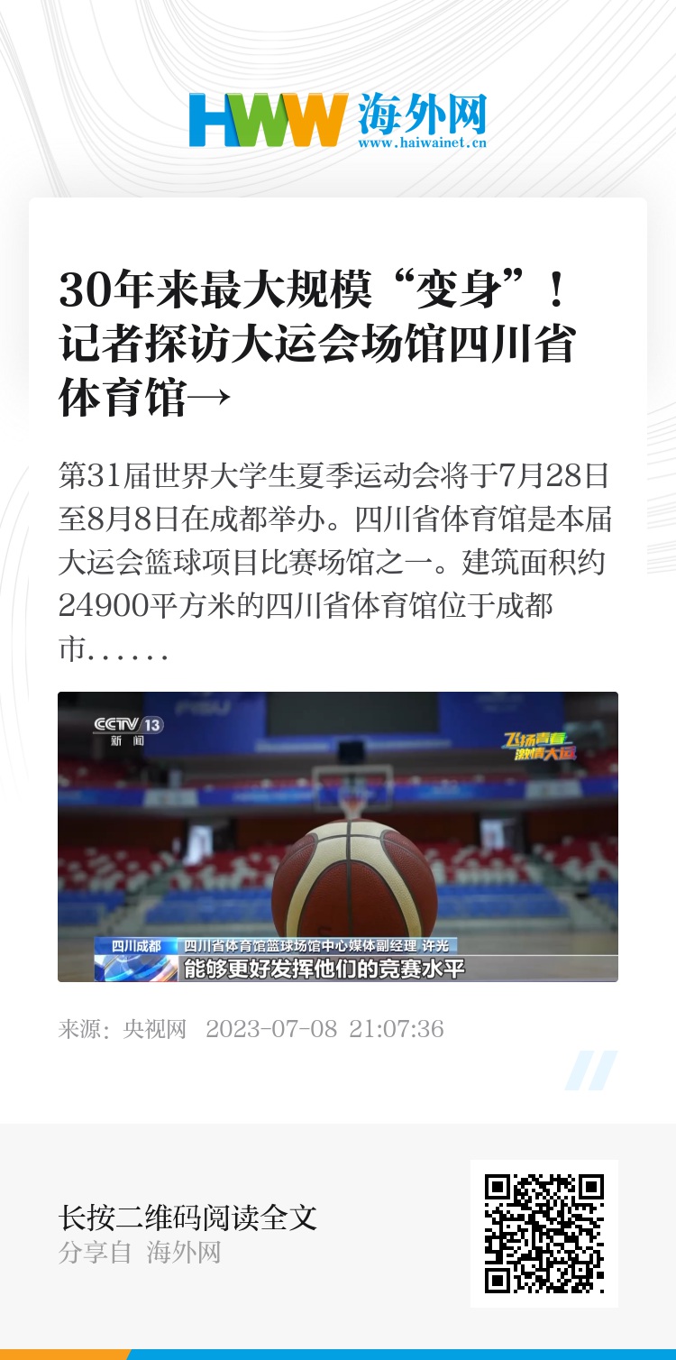 第31届世界大学生夏季运动会将于7月28日至8月8日在成都举办。四川省体育馆是本届大运会篮球项目比赛场馆之一。