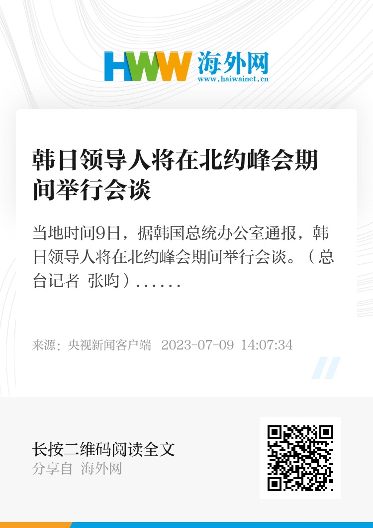 当地时间9日,据韩国总统办公室通报,韩日领导人将在北约峰会期间举行会谈。(总台记者 张昀)