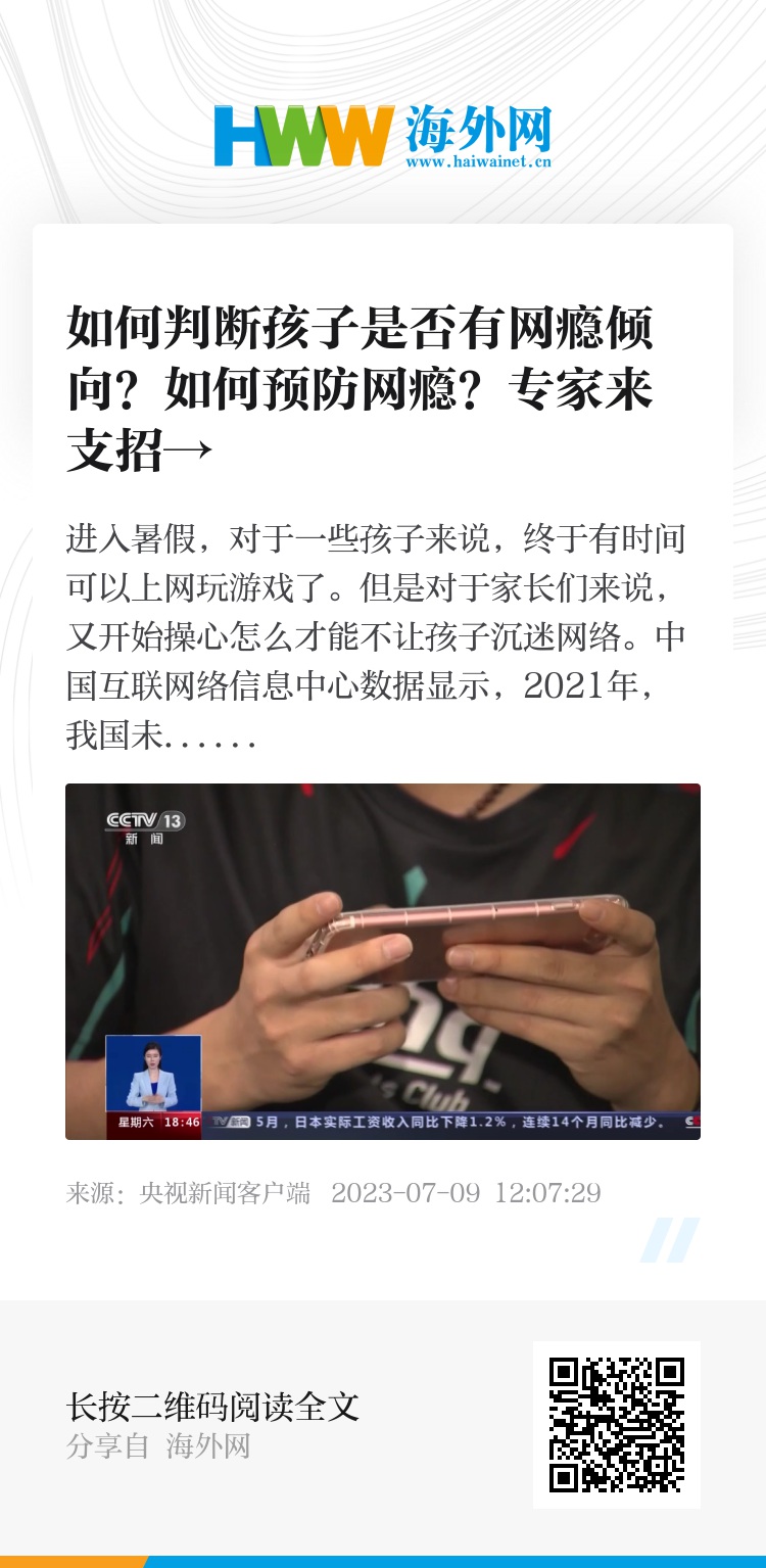 眼下正值暑假,医生表示,家长可以给孩子定制一个科学的作息时间表,此外,医生也推荐了一个预防网瘾的方法。