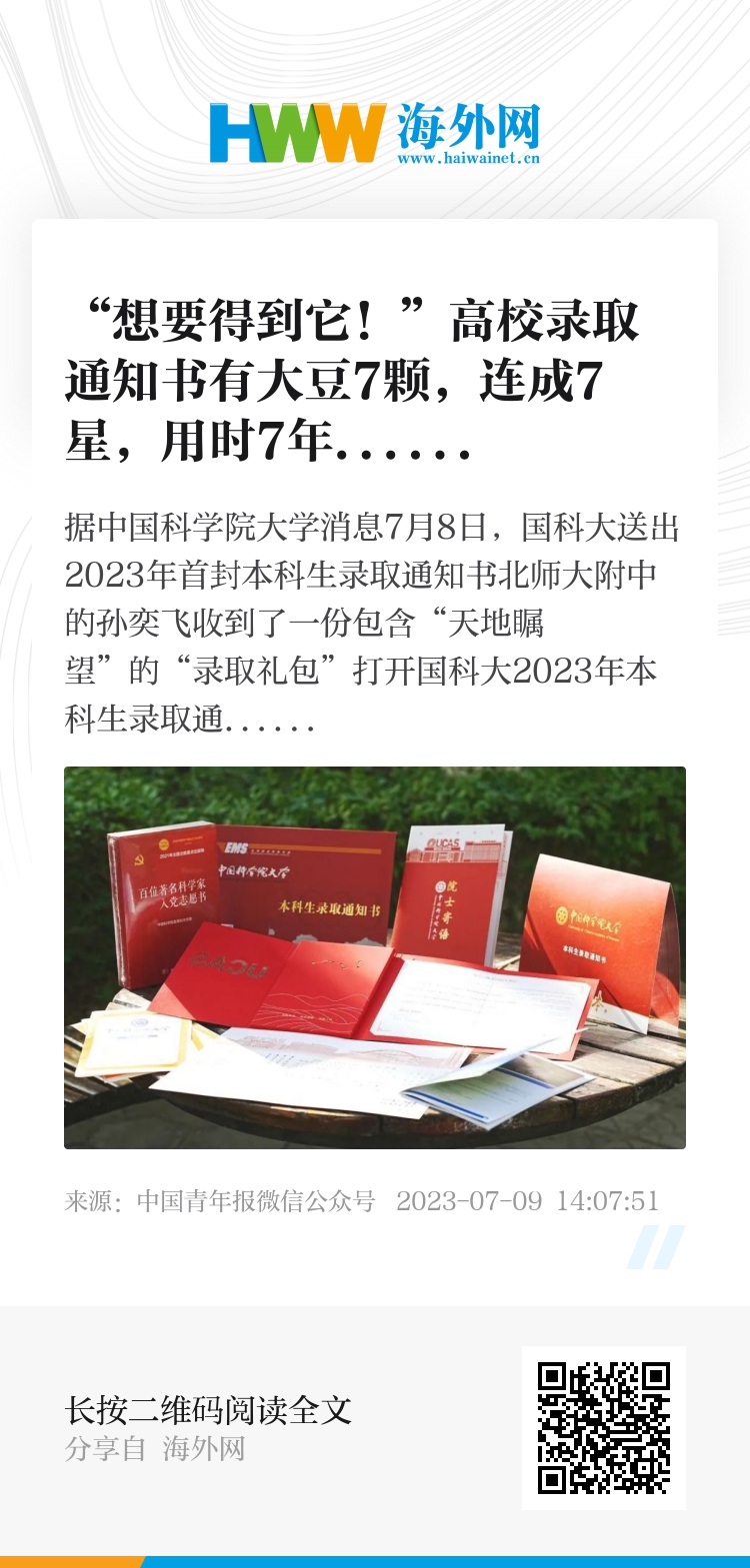 国科大还随录取通知书寄送了
