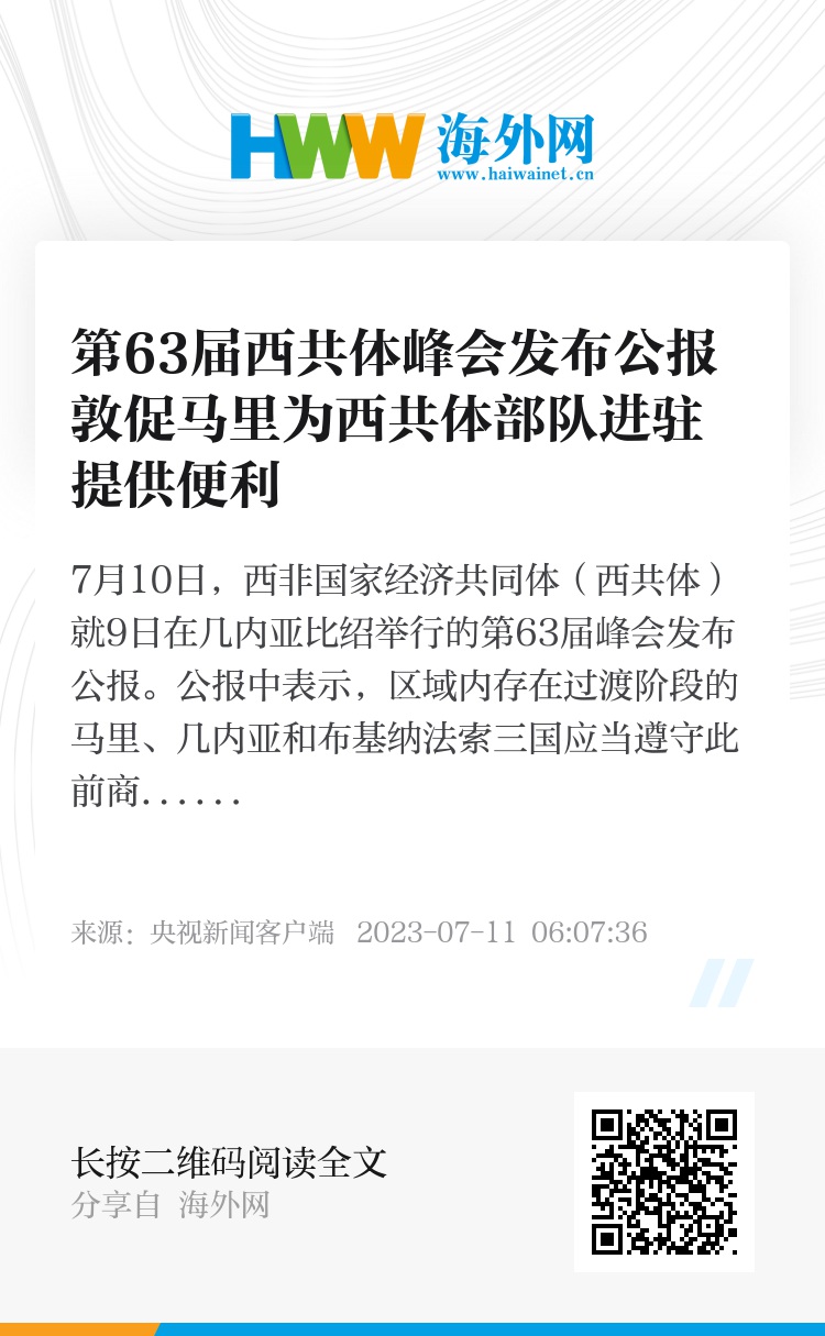 7月10日,西非国家经济共同体(西共体)就9日在几内亚比绍举行的第63届峰会发布公报。公报中表示,区域内存在过渡阶段的马里、几内亚和布基纳法索三国应当遵守此前商定的过渡时间表并在2024年恢复宪法秩序,实现选举。
