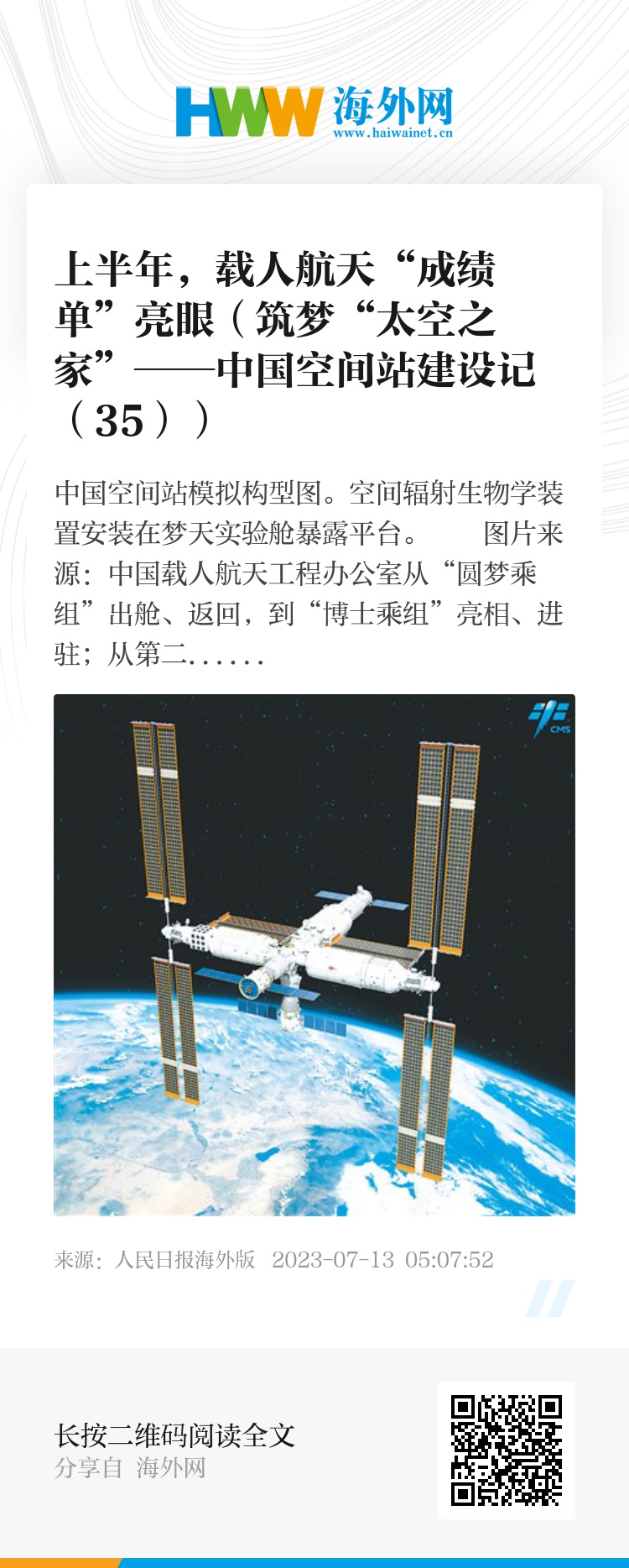 近日,中国载人航天工程办公室发布了2023中国载人航天年中“成绩单”,28项内容串联起了中国载人航天半年来的精彩故事。