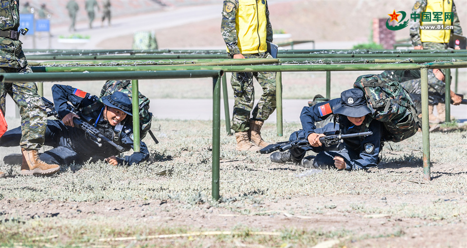 参赛队员正在进行穿越狙击课目竞赛。徐伟 摄