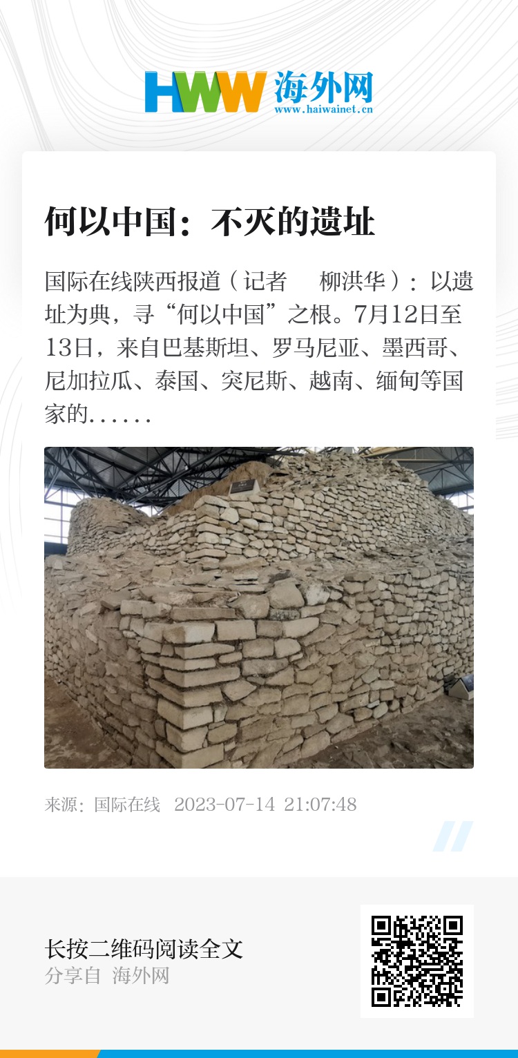国际在线陕西报道(记者 柳洪华):以遗址为典,寻“何以中国”之根。7月12日至13日,来自巴基斯坦、罗马尼亚、墨西哥、尼加拉瓜、泰国、突尼斯、越南、缅甸等国家的“打卡中国——你好,陕西!”参访团,踏足统万城遗址、石峁遗址、镇北台、红石峡等历史遗迹,拂去历史埃尘,览赏文明烟霞。