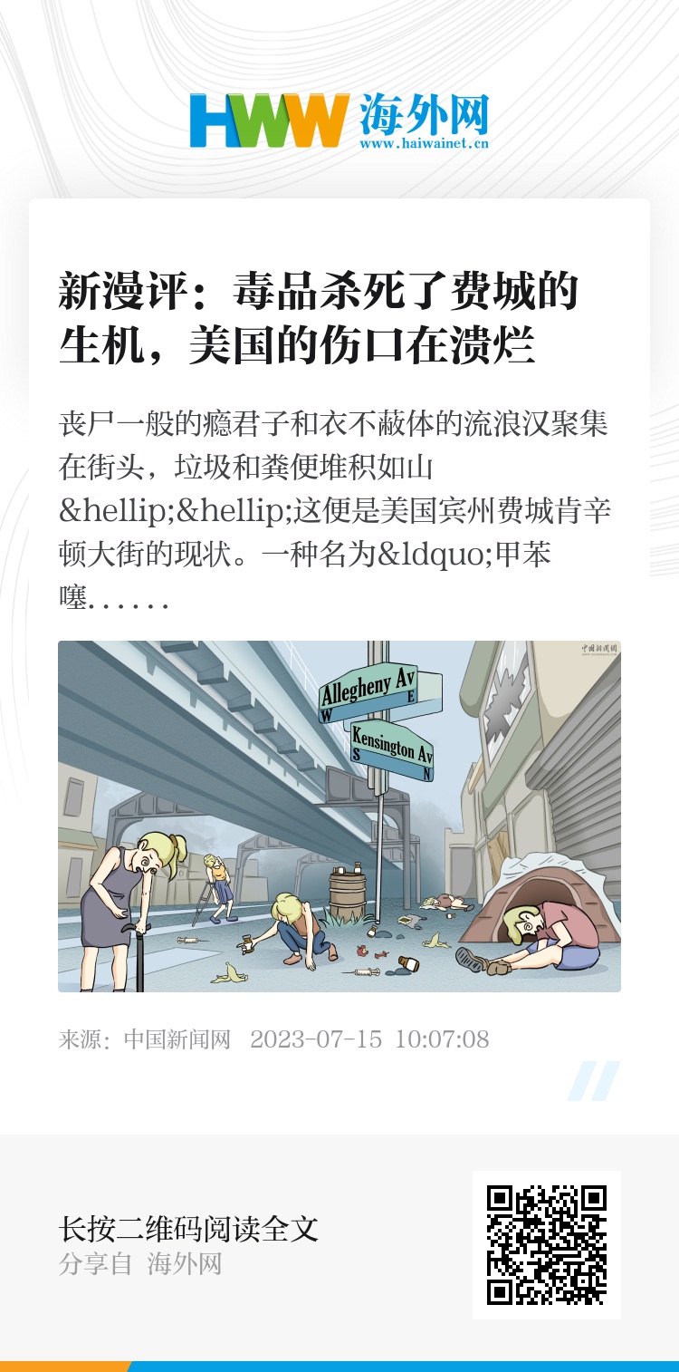 费城的肯辛顿大街,只是美国社会毒品泛滥的缩影。吸毒和精神药品滥用有深刻的社会根源,然而,美国社会对此的重视程度远远不够,政府采取的措施也收效甚微。毒品所引发的其他社会问题,也给美国政府带来了不小的压力。偷窃抢劫、医疗资源紧张、血源性传染病传播加剧等问题,无一不在警示美国政府:“溃烂的伤疤”所引起的感染和并发症,终有一天会摧毁美国社会。