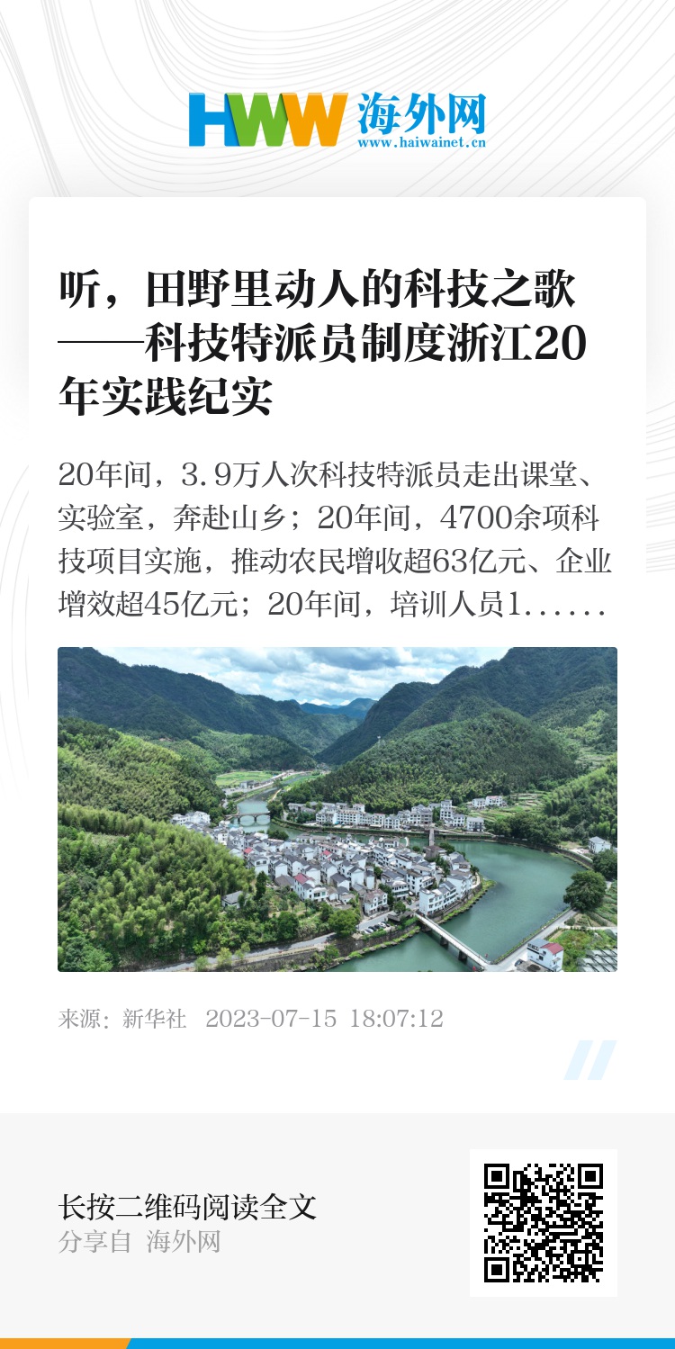 20年来,浙江科技特派员足迹遍布山海,他们用行动和实践,在之江山水间写就一篇篇精彩论文——