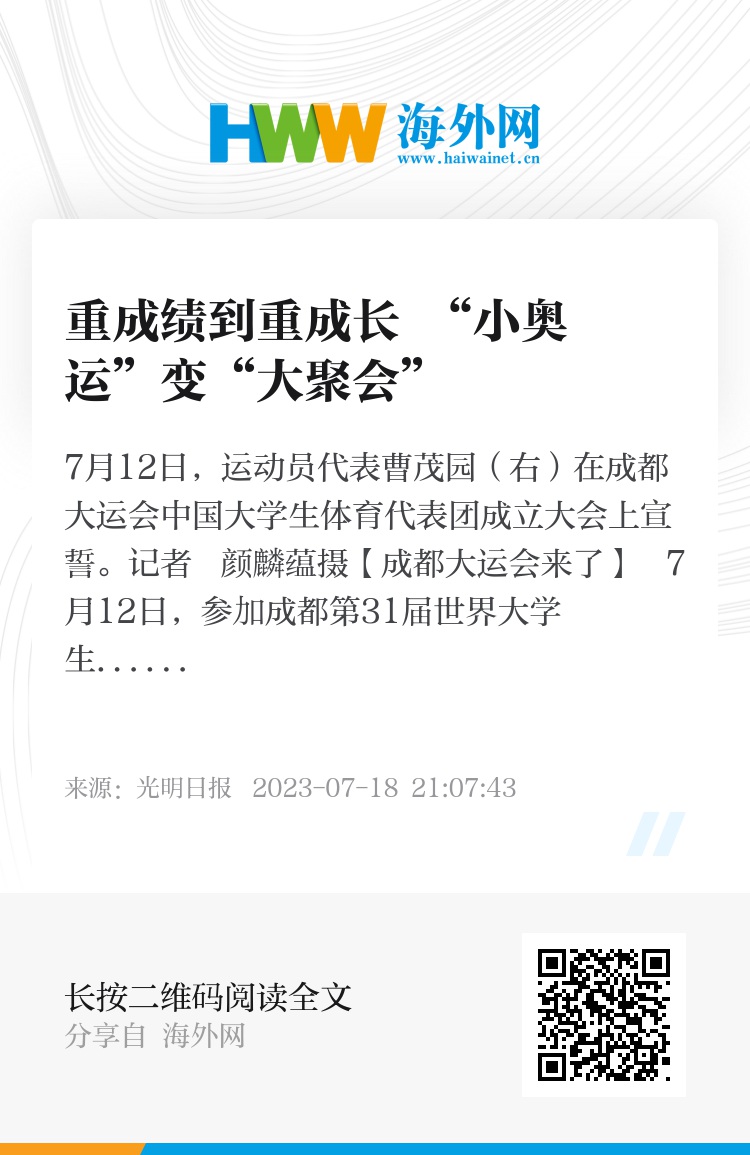 在袁微看来,近十多年来,除了参赛人员的变化,国人对大运会的认识变化同样使人欣慰。经过近半个世纪的发展,“小奥运”的说法已逐渐淡化,竞技成绩的追求不再被视为参加大运会的全部,为大学生创造的文化融合、感情交流等方面的意义更为社会所重视。