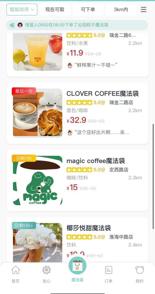 记者在上海登录一个“盲盒”小程序,看到所在地周边的部分商户销售一批名为“魔法袋”的产品,已经吸引多个餐饮品牌加入。平均售价只有十几元的“食物盲盒”,包含了多个烘焙产品。记者随机选购了一款“魔法袋”,到店取货后看到,售价11.9元的“魔法袋”里有4个蛋挞、2个肉松蛋糕。如果按照原价购买,这些东西应该需要20多元。