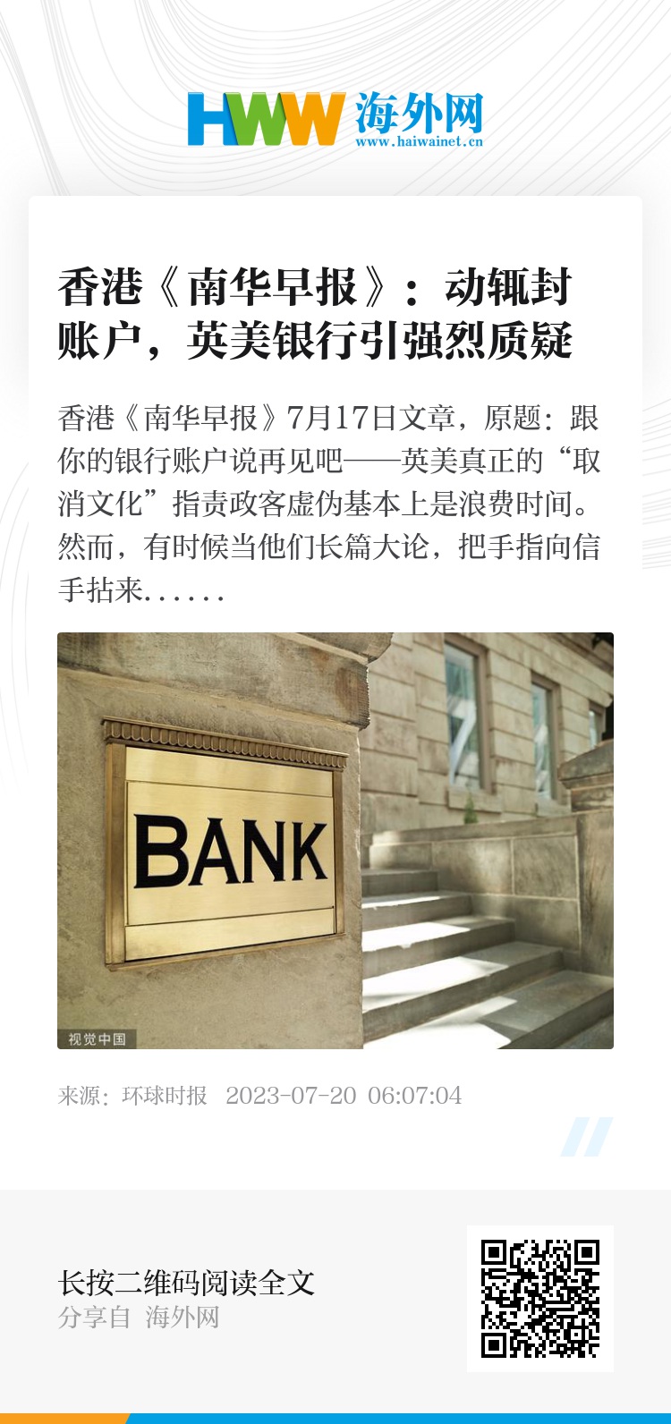 香港《南华早报》7月17日文章,原题:跟你的银行账户说再见吧——英美真正的“取消文化”