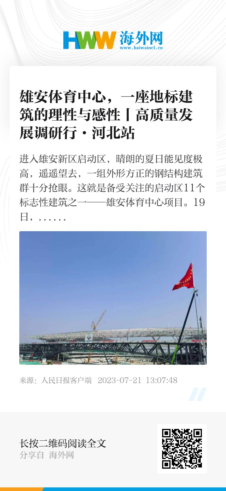 理性与感性交织,多层次、全覆盖、人性化的公共服务目标彰显,不断满足人民对美好生活的新期待,雄安体育中心将服务于更多新雄安人,也迎接更多来到雄安工作、旅游的京津冀、乃至全国各地的朋友。年轻的雄安正朝着“妙不可言”“心向往之”的目标阔步迈进。