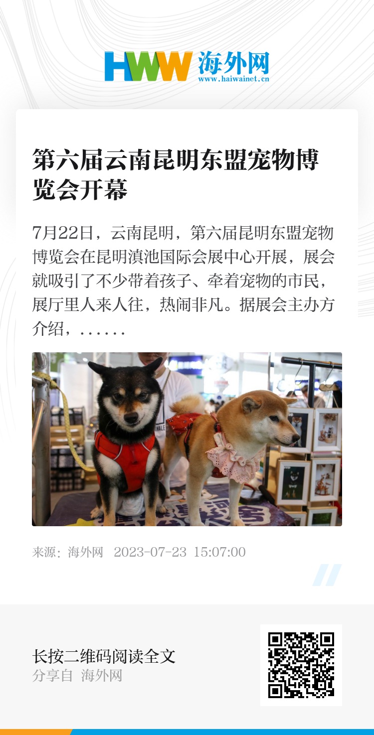 7月22日,云南昆明,第六届昆明东盟宠物博览会在昆明滇池国际会展中心开展,展会就吸引了不少带着孩子、牵着宠物的市民,展厅里人来人往,热闹非凡。据展会主办方介绍,本届展会共汇聚了优质参展商家300余家,参展的宠物行业热门品牌超过1000个。来源:IC photo