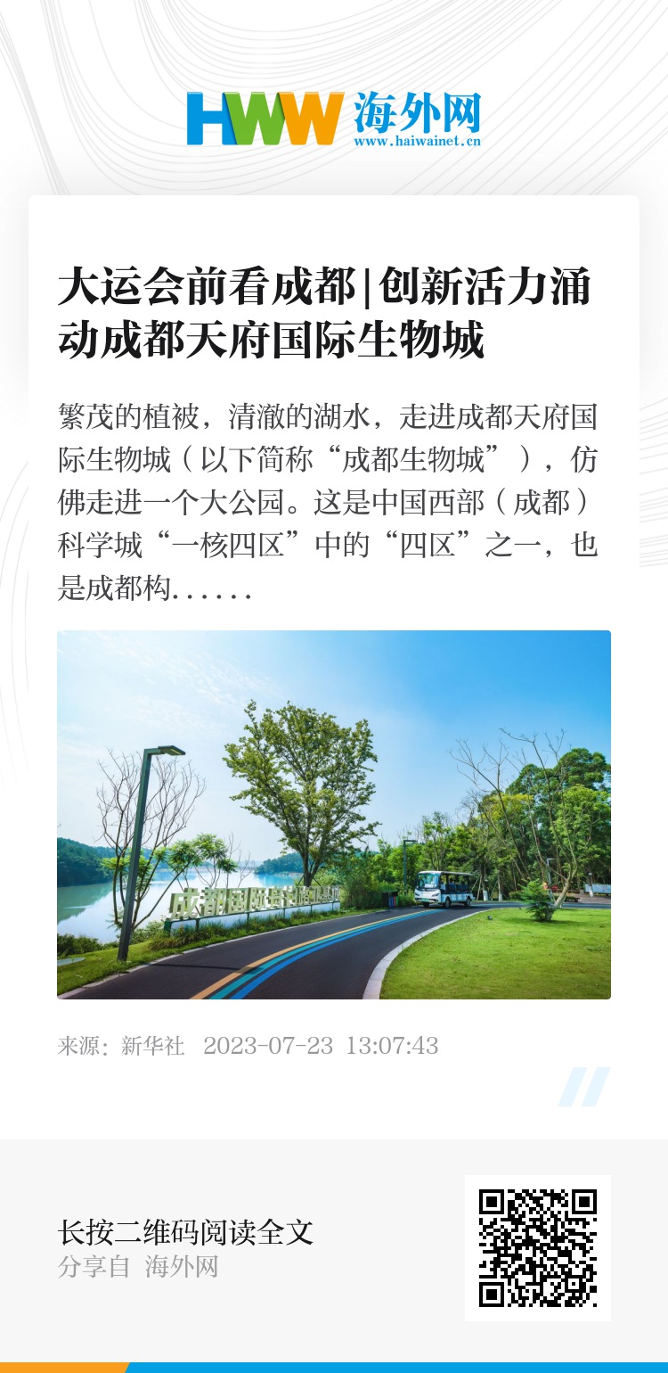 目前,成都生物城已累计落户项目300个,总投资超1200亿元。创新氛围浓厚,环境优美舒心,海内外人才纷至沓来,创新活力正在这里积蓄成势。(记者李倩薇)