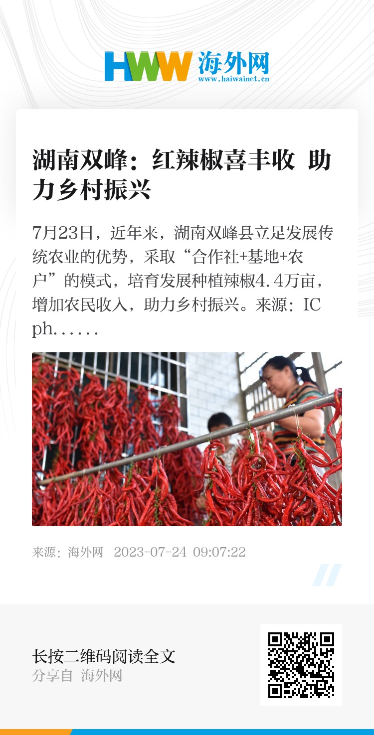 32633971,.湖南双峰:红辣椒喜丰收 助力乡村振兴,.2023-07-24 09:05:22,.204428,.张青津、岳雨田
