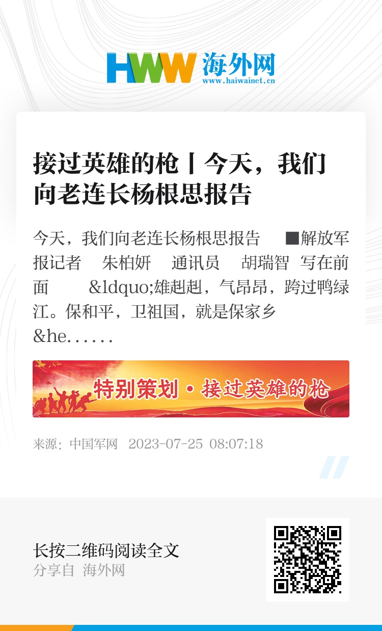 值此抗美援朝战争胜利70周年之际,本版从即日起推出“接过英雄的枪”特别策划。让我们走进抗美援朝英模连队,聆听新时代英雄传人奋斗强军的故事。