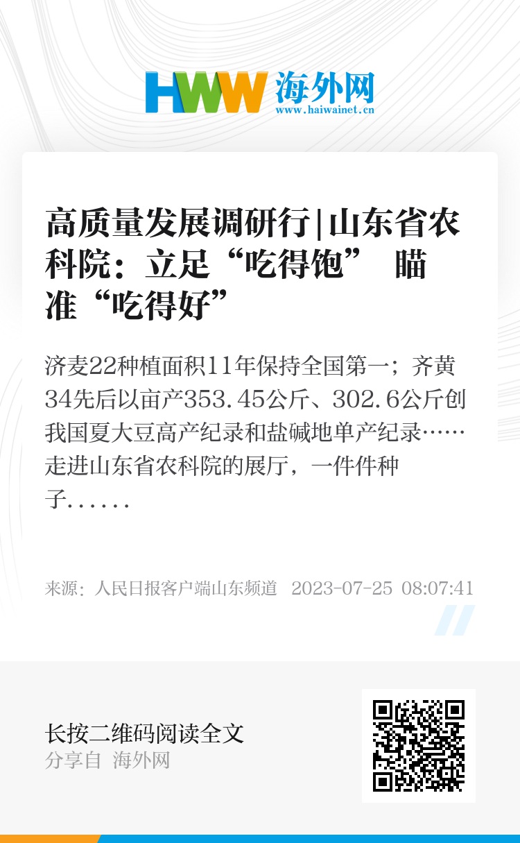走进山东省农科院的展厅,一件件种子实物、一块块介绍展板渐次排开,让人心里顿生一种踏实感——“手中有粮,心中不慌”。