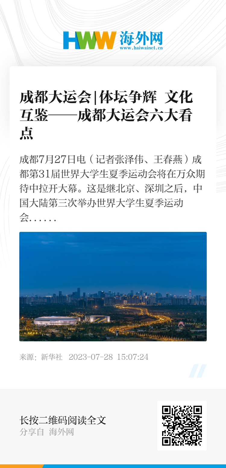 28日,成都大运会就将正式拉开大幕,成都将迎来世界各地的青年健儿,也将接受各方的检验。