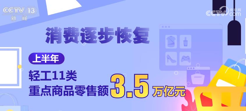 消费逐步恢复。上半年,轻工11类重点商品零售额3.5万亿元,占社会消费品零售总额的15.4%,同比增长6.3%。