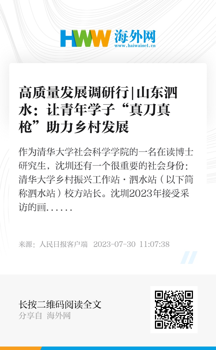 作为清华大学社会科学学院的一名在读博士研究生,沈圳还有一个很重要的社会身份:清华大学乡村振兴工作站·泗水站(以下简称泗水站)校方站长。