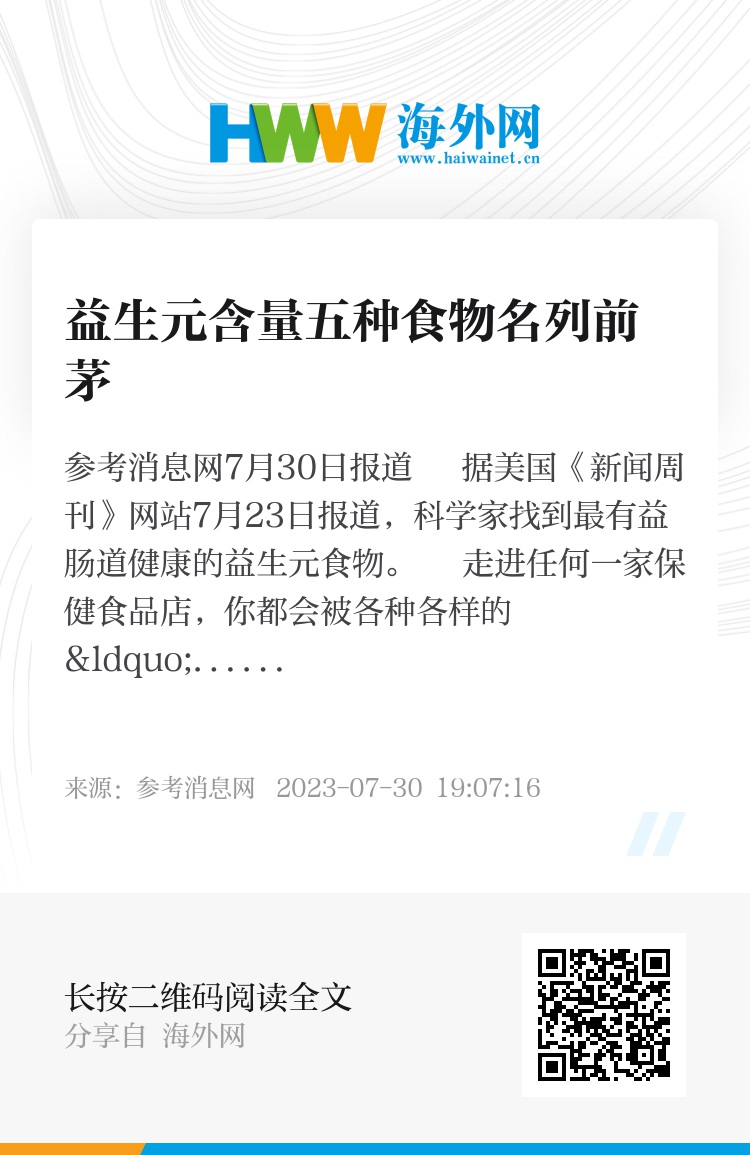 参考消息网7月30日报道 据美国《新闻周刊》网站7月23日报道,科学家找到最有益肠道健康的益生元食物。