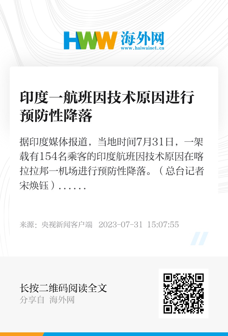 据印度媒体报道,当地时间7月31日,一架载有154名乘客的印度航班因技术原因在喀拉拉邦一机场进行预防性降落。(总台记者 宋焕钰)