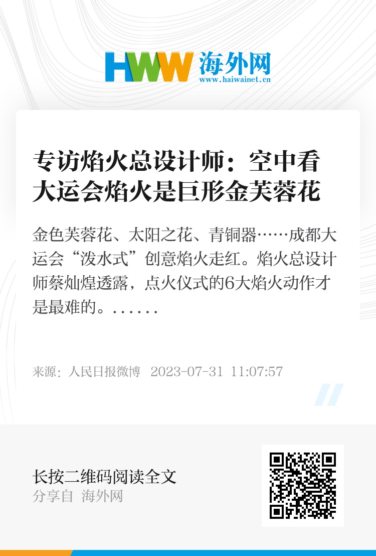 金色芙蓉花、太阳之花、青铜器……成都大运会“泼水式”创意焰火走红。焰火总设计师蔡灿煌透露,点火仪式的6大焰火动作才是最难的。