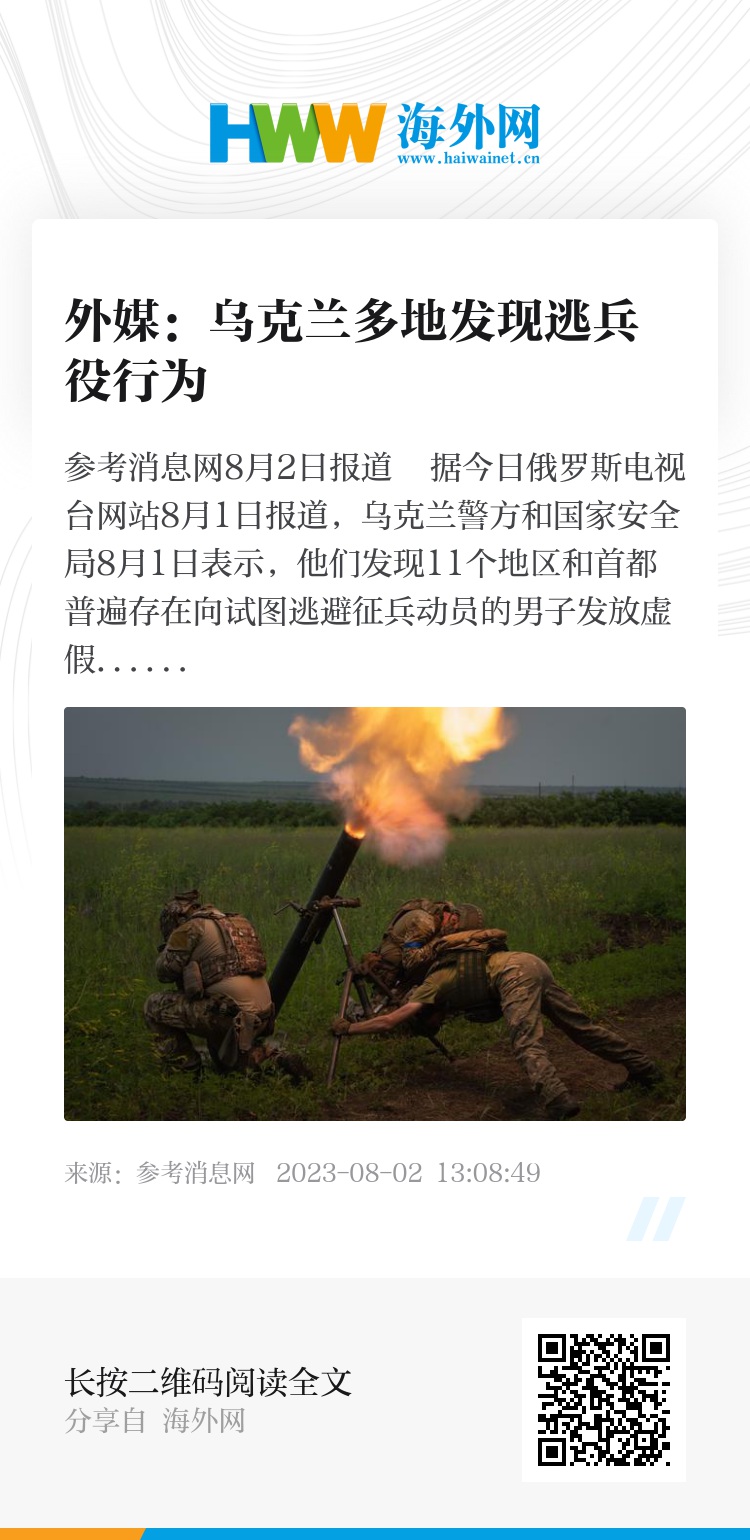 参考消息网8月2日报道 据今日俄罗斯电视台网站8月1日报道,乌克兰警方和国家安全局8月1日表示,他们发现11个地区和首都普遍存在向试图逃避征兵动员的男子发放虚假医疗豁免证书的阴谋。