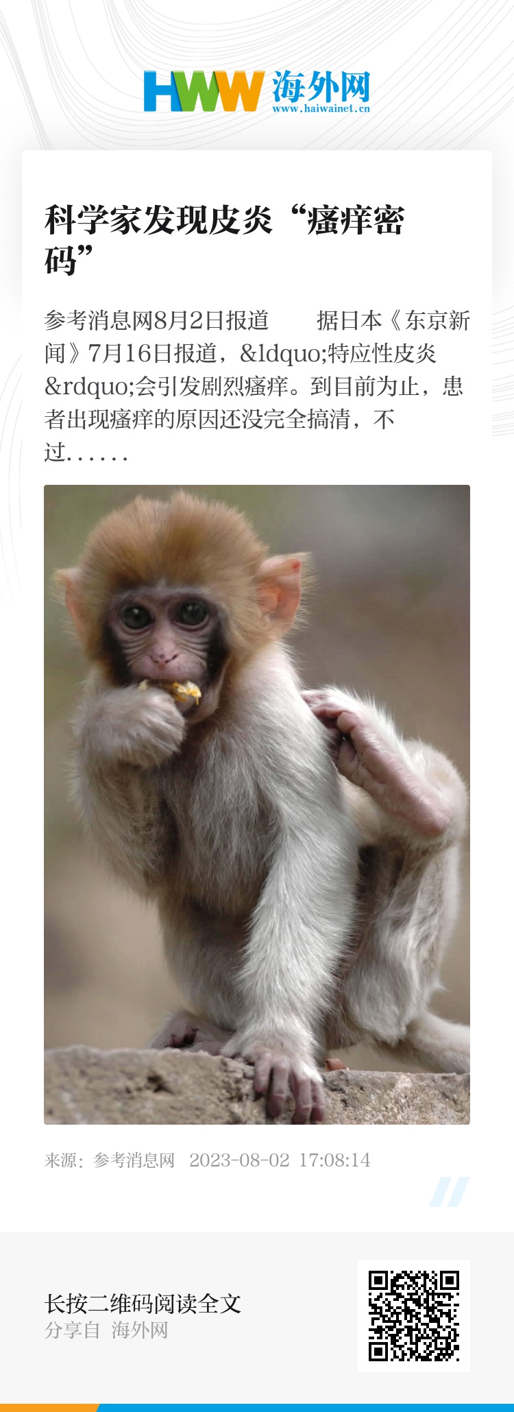 参考消息网8月2日报道 据日本《东京新闻》7月16日报道,“特应性皮炎”会引发剧烈瘙痒。到目前为止,患者出现瘙痒的原因还没完全搞清,不过日本佐贺大学和富山大学的研究团队找到了原因之一,并发现了有可能成为止痒药的化合物,现在正在与民营企业共同开发新药。据说在日本国内20岁以下人群中约有10%的人罹患特应性皮炎,人们非常期待新药投入使用。