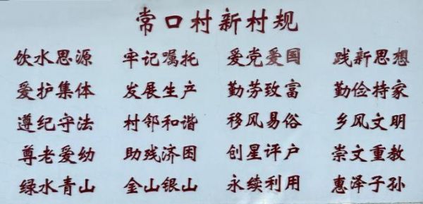 殷殷话语,字字千钧。此后,村民们把嘱托归纳总结成72个字村规民约,刻在石碑上,立在村部前,当作全村的实践指南。