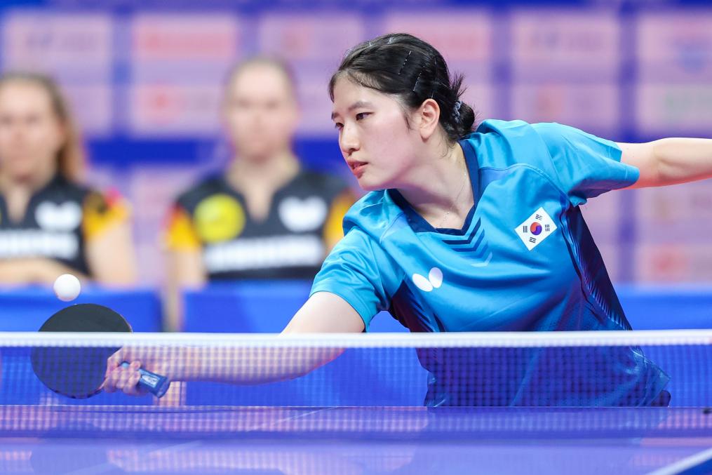 7月30日,韩国乒乓球队队员在比赛中。官方摄影团队提供