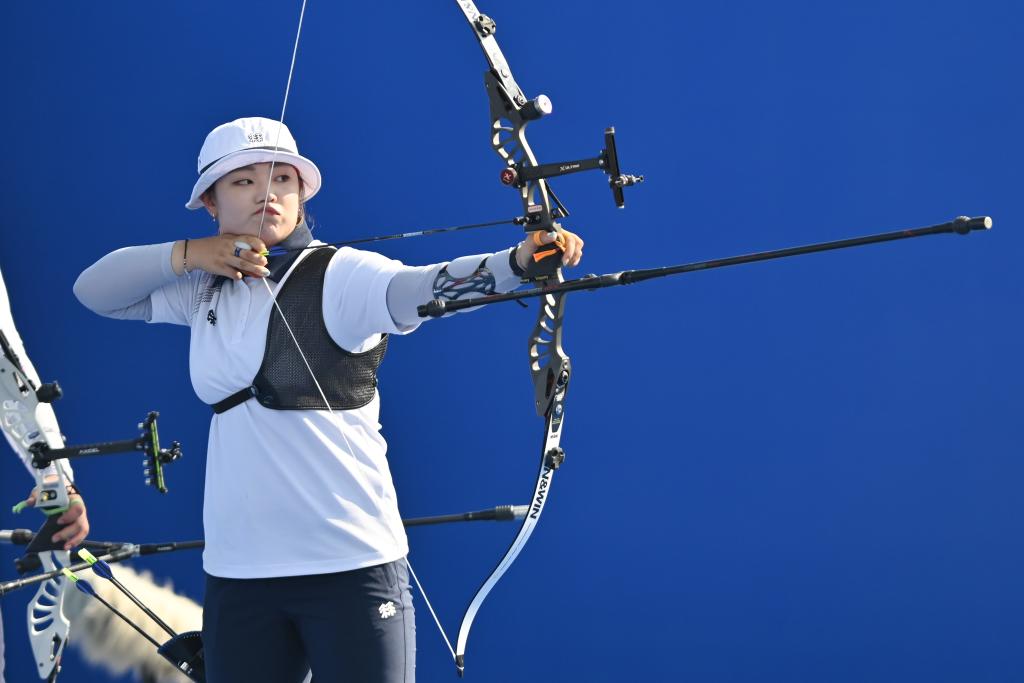 7月30日,韩国射箭队队员在比赛中。官方摄影团队提供