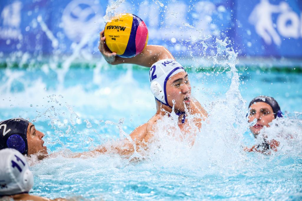 7月30日,韩国水球队队员姜旻俊在比赛中。官方摄影团队提供