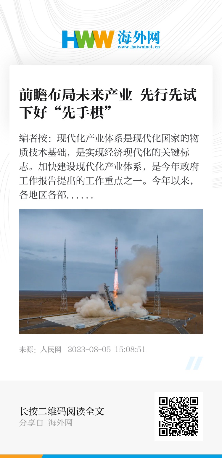 未来产业是用明天的科技锻造后天的产业。前瞻布局,抢抓新一轮科技革命和产业变革的机遇,未来产业必将成为加快建设现代化产业体系、实现高质量发展的“先手棋”。(人民网记者 王震)(方彭依梦、实习生王小月对本文亦有贡献。)