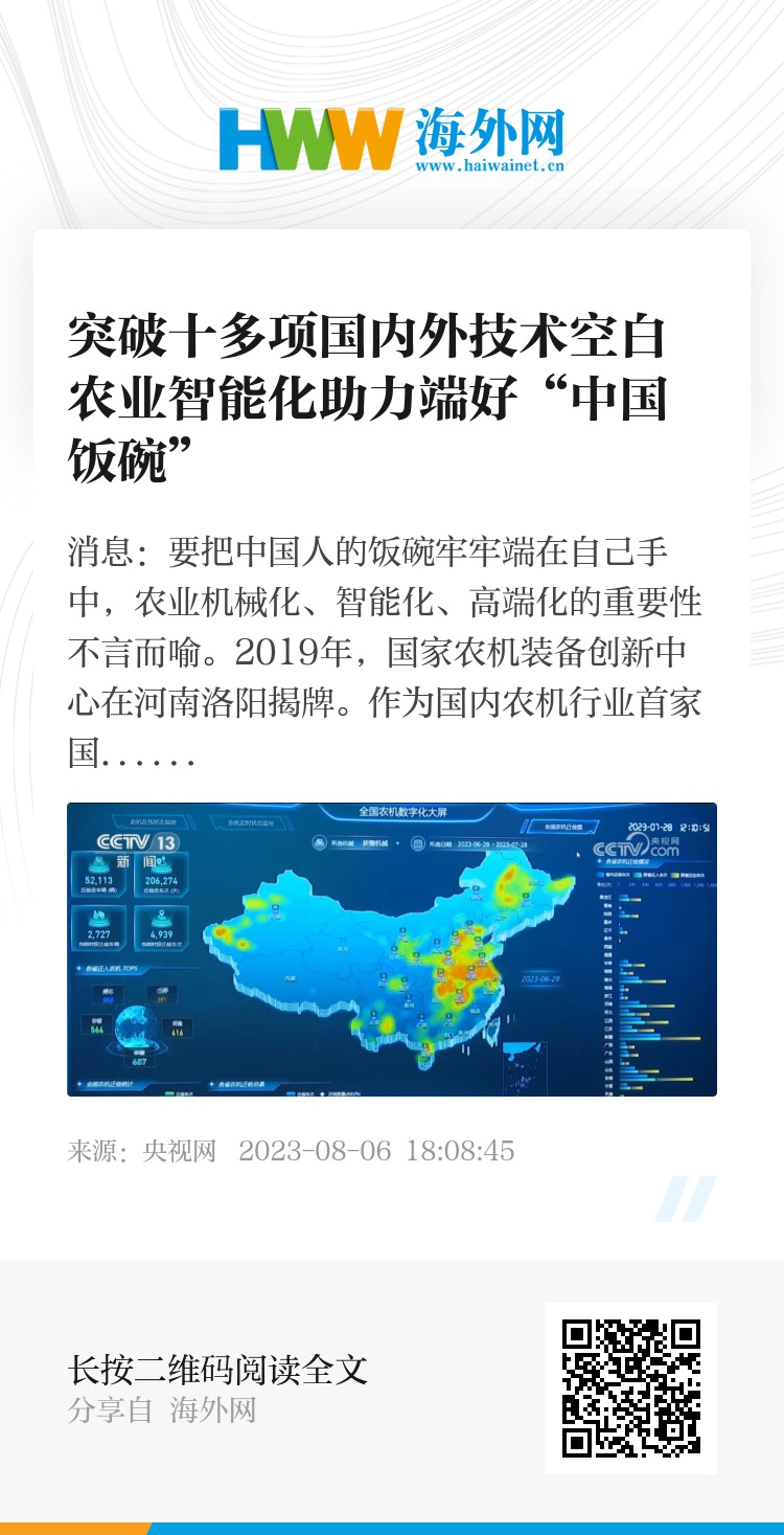 央视网消息:要把中国人的饭碗牢牢端在自己手中,农业机械化、智能化、高端化的重要性不言而喻。2019年,国家农机装备创新中心在河南洛阳揭牌。