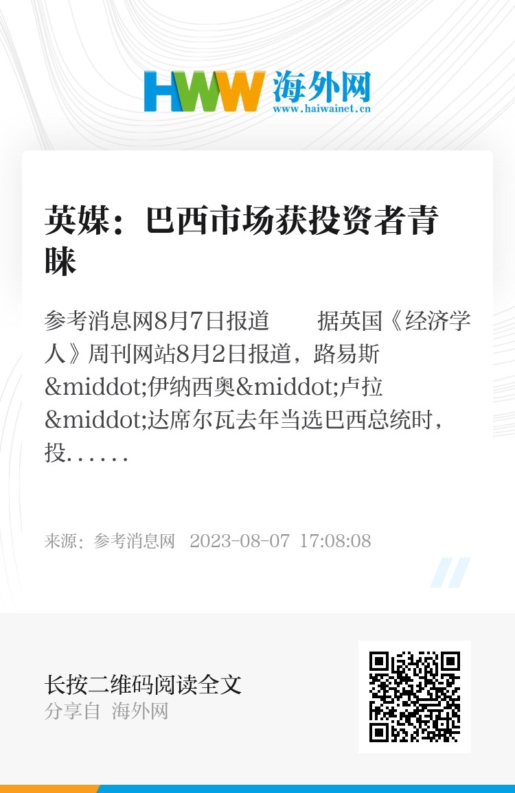 参考消息网8月7日报道 据英国《经济学人》周刊网站8月2日报道,路易斯·伊纳西奥·卢拉·达席尔瓦去年当选巴西总统时,投资人瑟瑟发抖。许多人担心他的劳工党前政府肆意财政挥霍再度出现,前政府2016年在深度经济衰退中终结。但他上台6个月后,市场正对卢拉政府热情起来。最近对94位巴西基金经理和分析师的调查显示,只有44%对政府持不利看法,低于今年3月的90%。评级机构惠誉7月26日上调对巴西长期外币债务的评级,这是2018年下调以来的首次。