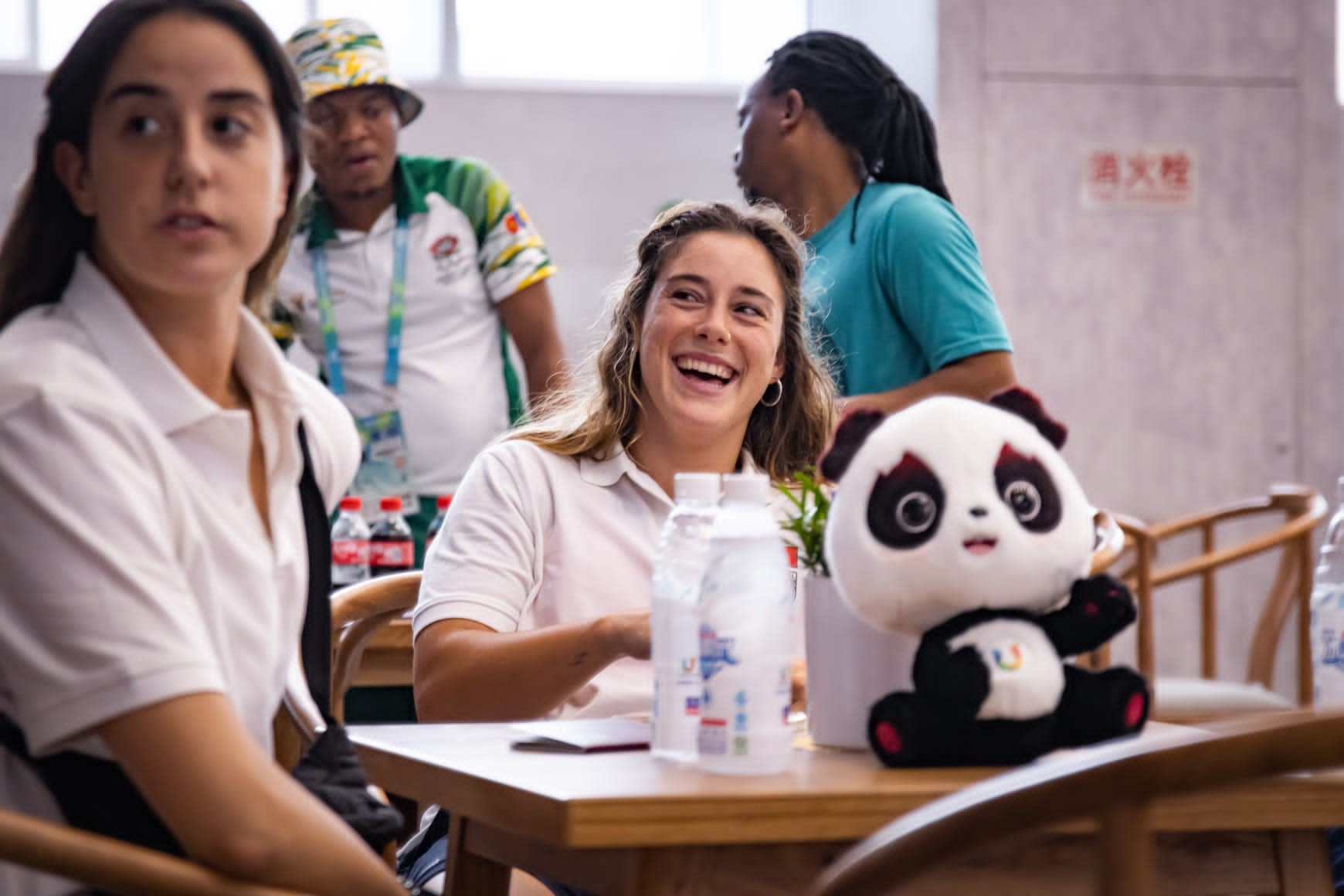 卡洛尼娜对成都大运会组织的工作印象深刻。“你在任何地方都能找到志愿者,无论是大运村还是训练场或是赛场,他们一直都面带微笑地为大家提供帮助和服务。今天有几位志愿者还送给了我们胸针和别针,我们还彼此交换了手镯,他们真的非常亲切热情。”