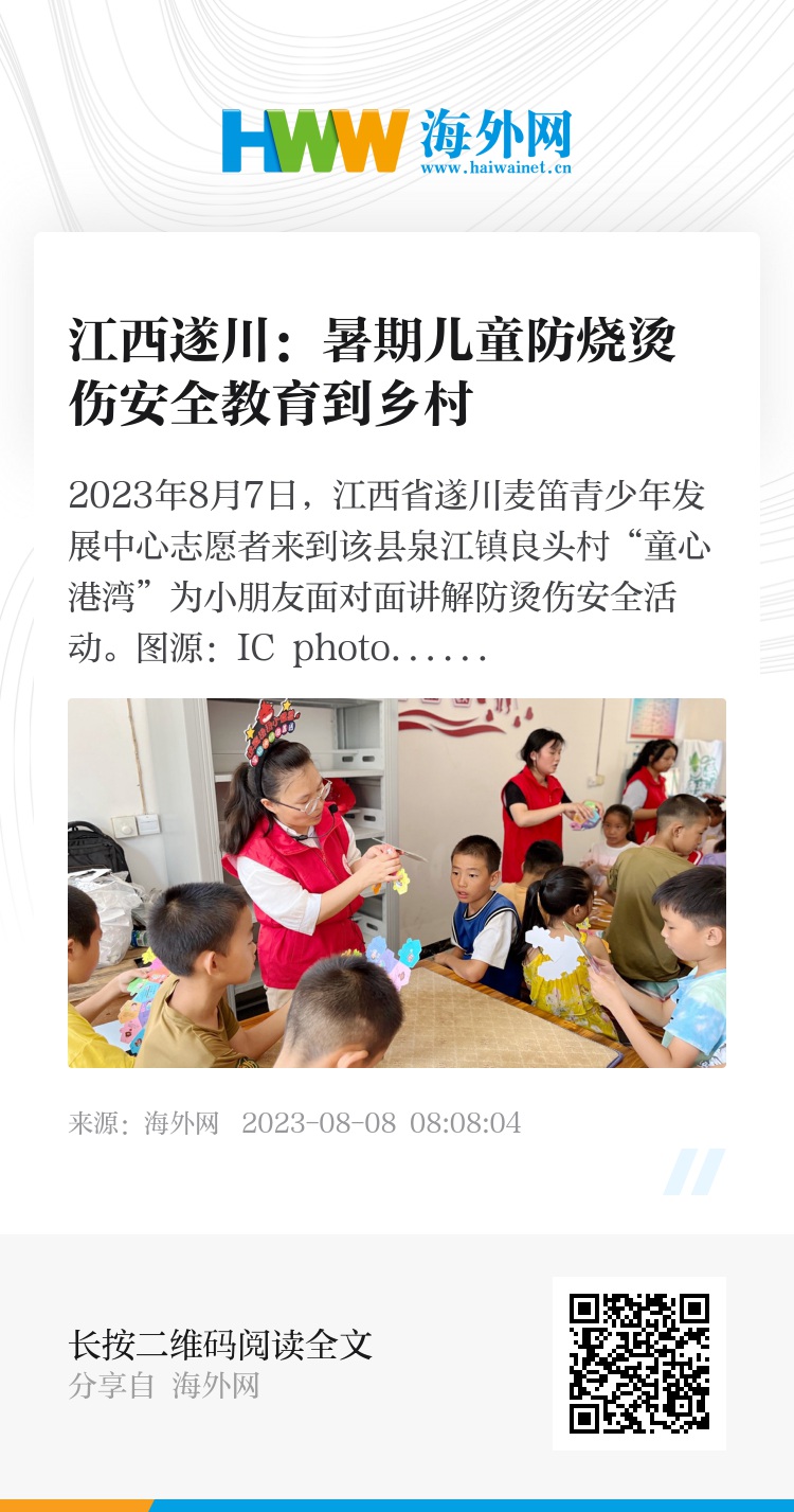 32640882,.江西遂川:暑期儿童防烧烫伤安全教育到乡村,.2023-08-08 08:10:04,.204441,.张荣耀