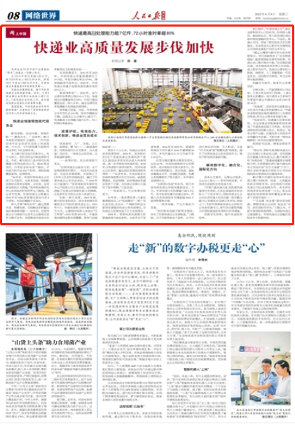 服务能力更强。目前,中国快递业专有货机达161架,服务车辆超26万辆,县级及以上分拨中心超万个,快递最高日处理能力超7亿件,72小时准时率超80%。