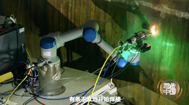 机器人测量钢板尺寸和位置,大脑根据数据迅速发出指令,焊枪上的激光感应器跟踪识别焊缝,实时纠偏。