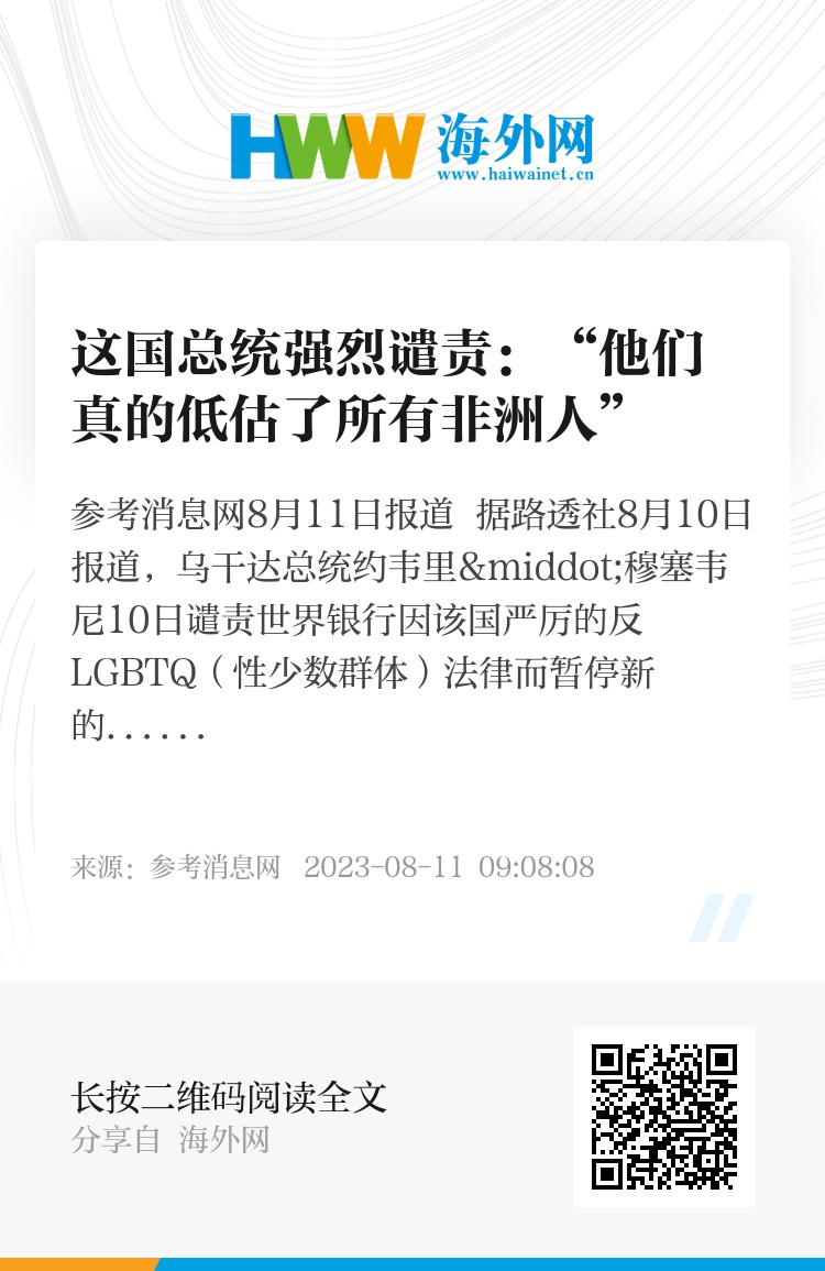 参考消息网8月11日报道 据路透社8月10日报道,乌干达总统约韦里·穆塞韦尼10日谴责世界银行因该国严厉的反LGBTQ(性少数群体)法律而暂停新的融资的决定,并誓言寻找替代信贷来源。