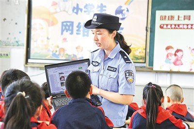 6月13日,江苏省海安市公安局墩头派出所民警走进辖区小学,开展未成年人预防网络沉迷和网络陷阱的安全教育,引导乡村儿童树立正确的上网观,做到文明健康上网,增强网络安全意识。周强摄(人民视觉)