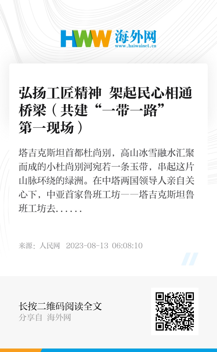 以诚待人,以心换心,鲁班工坊正是中塔合作蓬勃发展的缩影。中国驻塔吉克斯坦大使吉树民说,相信鲁班工坊将培养出更多塔国家发展需要的专业技术人才,推动塔工业化建设进程,为中国和中亚国家务实合作提供新的示范。
