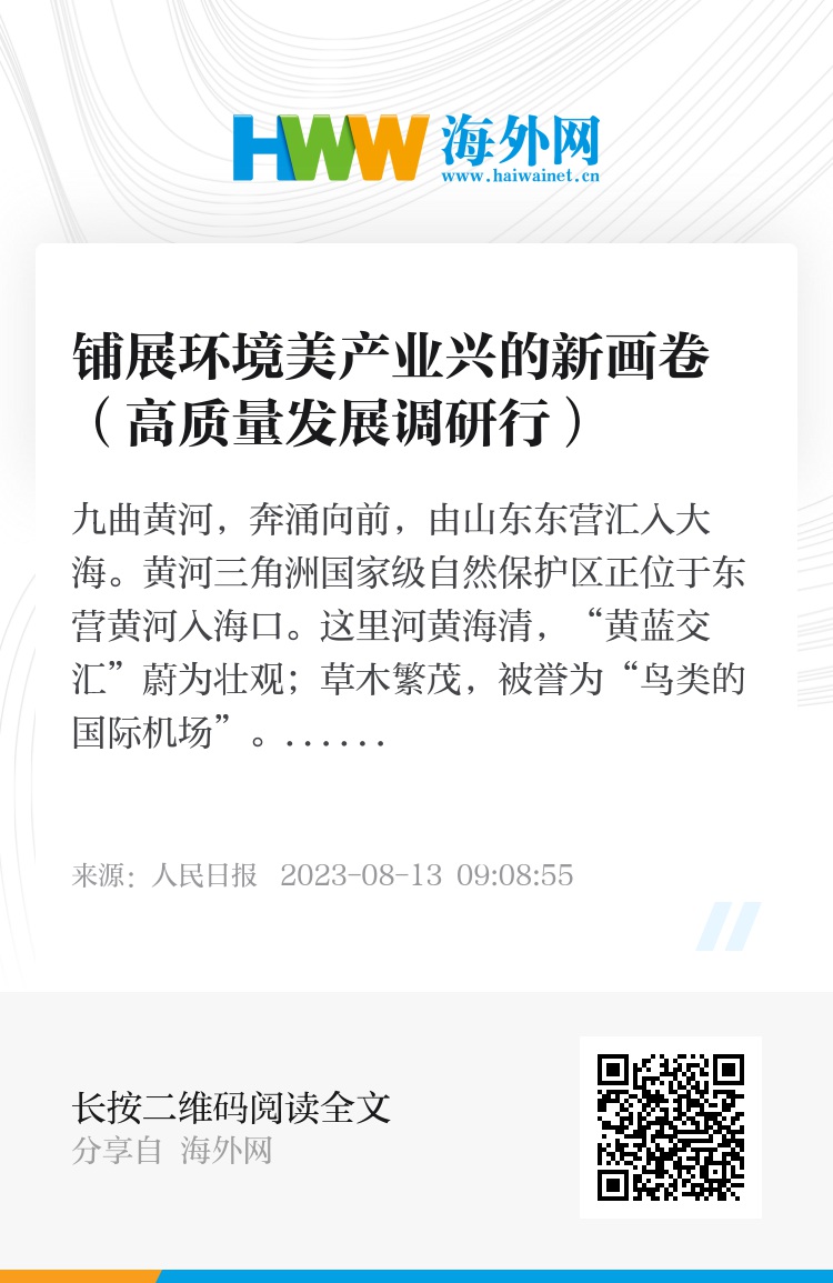 昔日盐碱之地,如今变为“沃野粮仓”。生态优先、绿色发展、人与自然和谐共生,山东正铺展新时代的黄河新画卷。(本报记者 姜 赟 马 原 王 沛)(本报记者肖伟光、王洲、李栋,人民网记者谈媛参与采写)