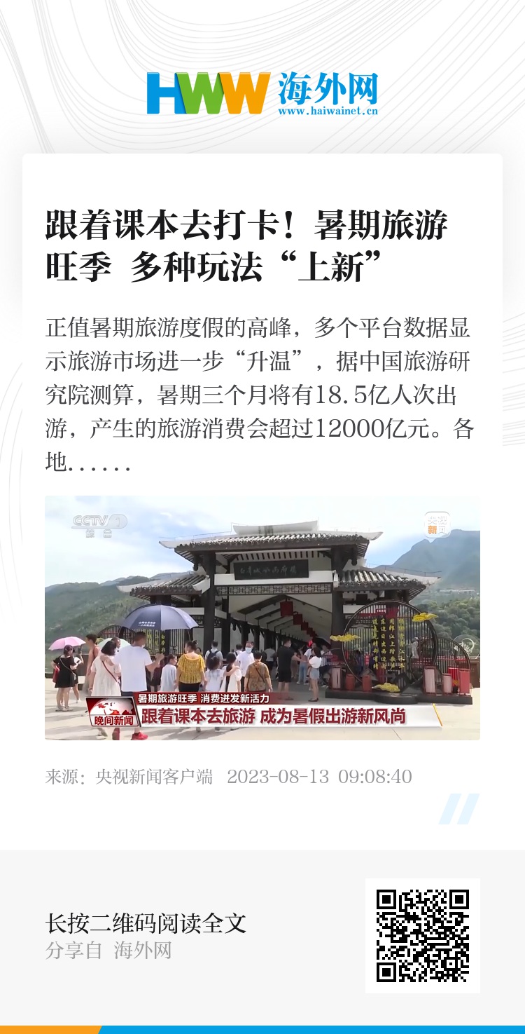 正值暑期旅游度假的高峰,多个平台数据显示旅游市场进一步“升温”,据中国旅游研究院测算,暑期三个月将有18.5亿人次出游,产生的旅游消费会超过12000亿元。各地丰富旅游样态,满足不同群体的旅游需求。