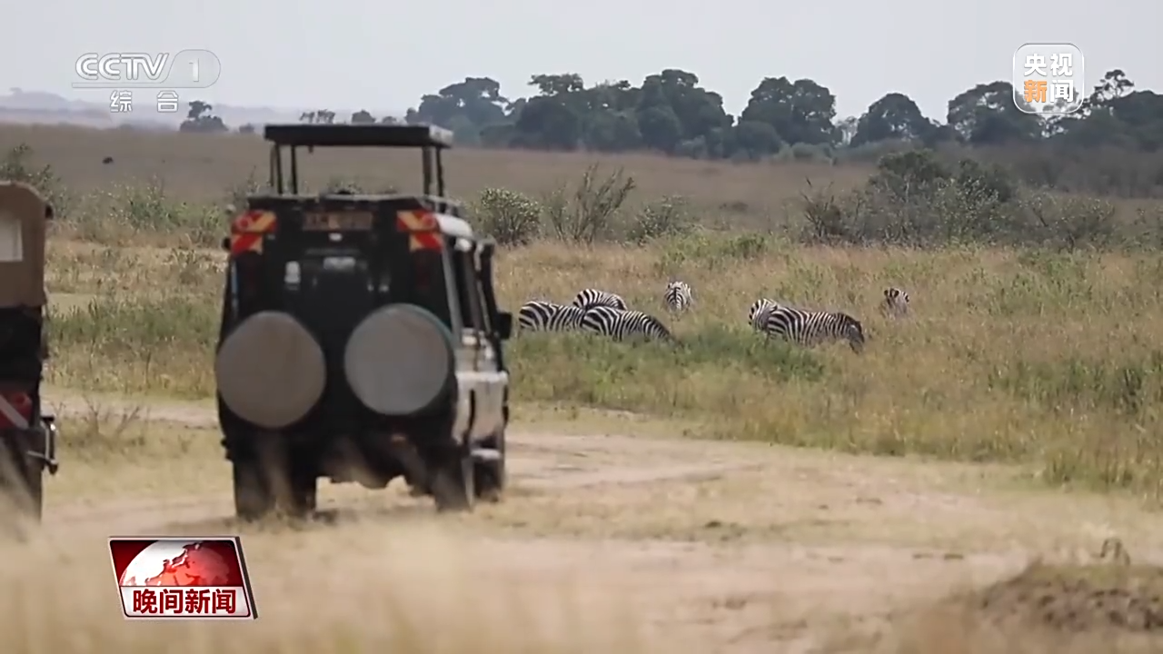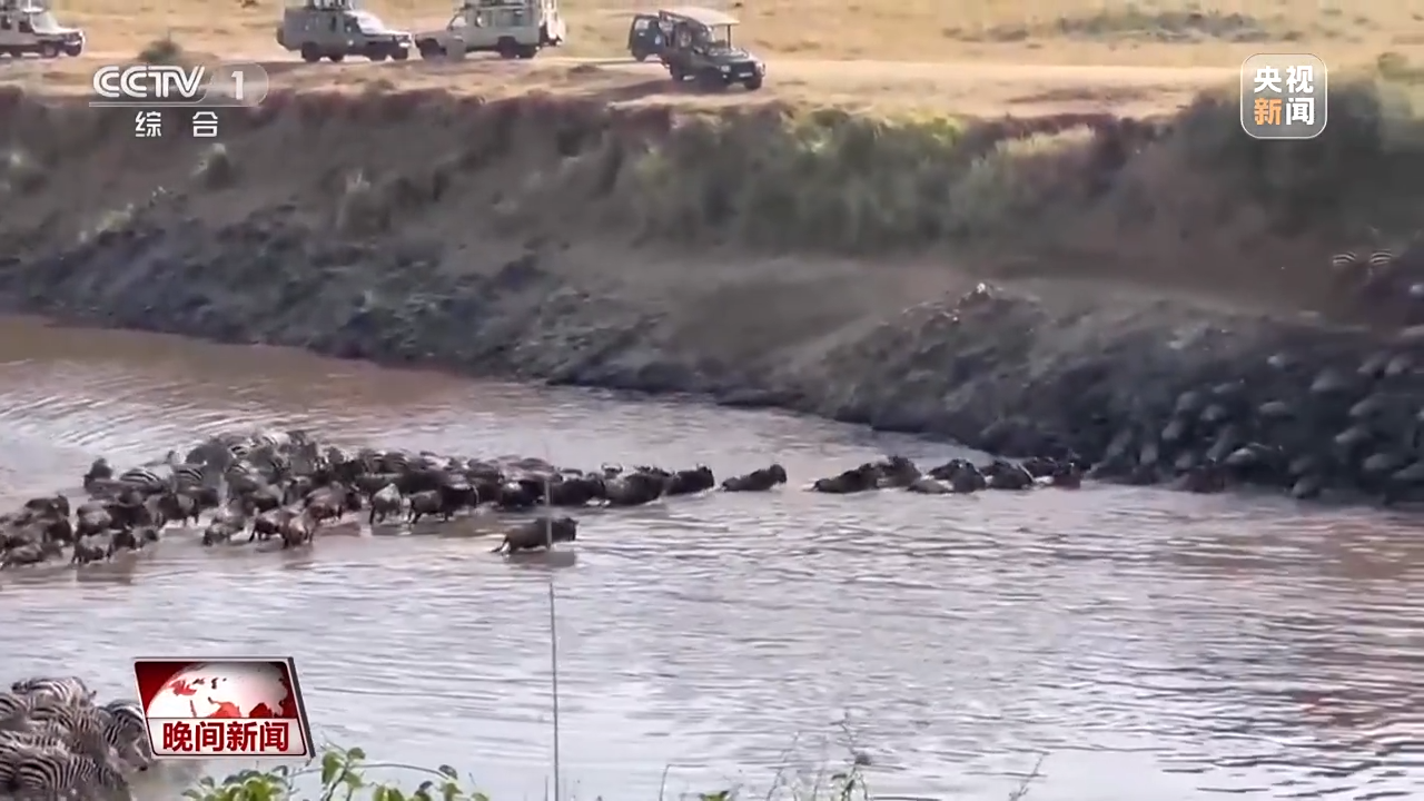 总台记者 李雪薇:这里是肯尼亚马赛马拉国家公园,马拉河边聚集了大批辆车,其中很多车上都载有中国游客,等待观赏角马和斑马过河,期待在现场感受野性的马赛马拉。