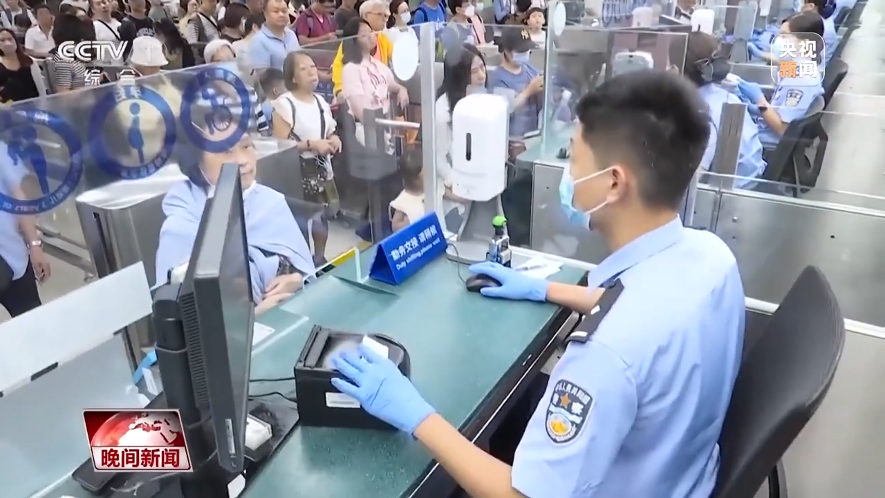 总台央视记者 夏美子:这里是罗湖口岸,中午12点,有大批香港游客准备通关进入深圳。罗湖口岸这个暑假每天要迎来13.8万人次的通关量,而到了周末,这个数据就要攀升到近20万人次。就在这两天,包括罗湖口岸在内的深圳九个口岸,创下了复关以来单日出入境客流量的高峰,突破了74.6万人次。